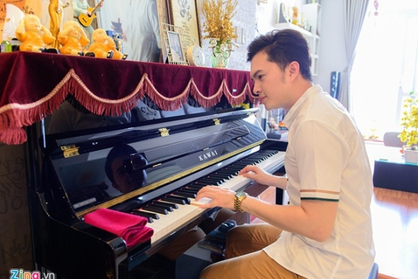 Ngoài ra, anh cũng nhanh tay lướt nhẹ phím đàn piano, đây là nơi anh tập nhạc, những bản nhạc mới và là nơi anh giải trí sau những ngày làm việc mệt mỏi.